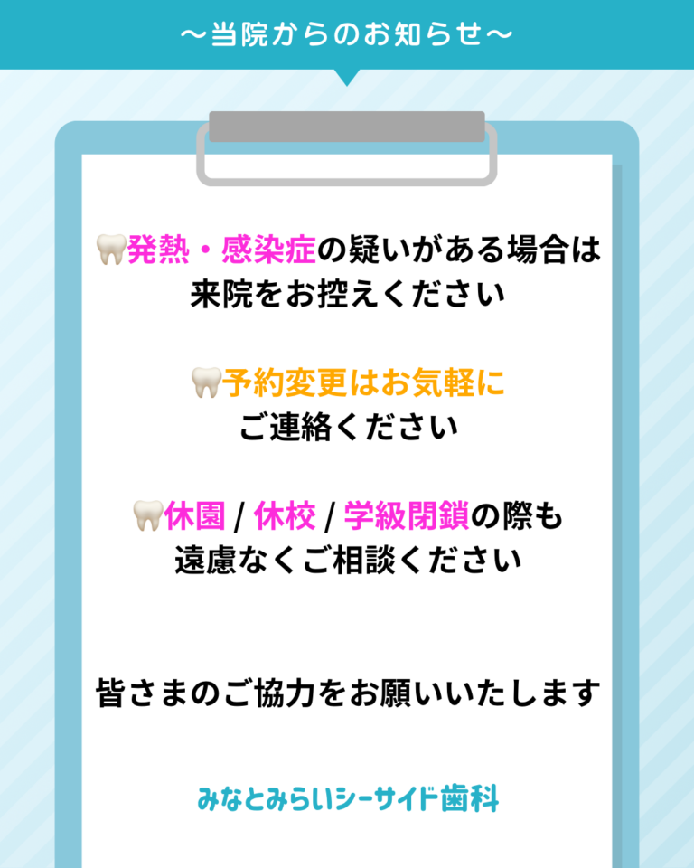 みなとみらいおぎはら歯科医院よりお知らせです。